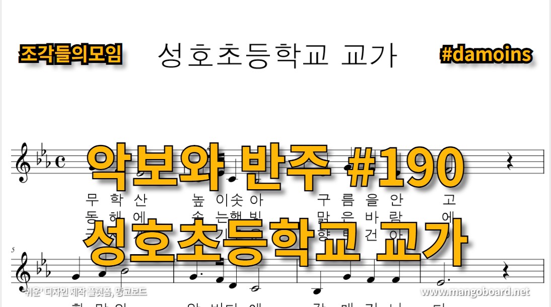 성호초등학교 교가를 프로그램을 사용하여 악보로 만들어 보았습니다.